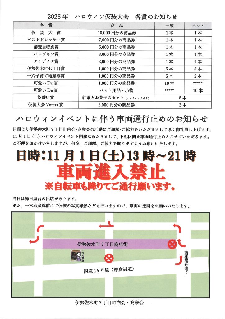 また毎年激しい争いを繰り広げる仮装大賞! 今年も参加者以外の方にも投票を行って頂き、その中から抽選で伊勢佐木町7丁目で使用出来る商品券が当たります!組織票OK!皆様の参加をお待ちしております!